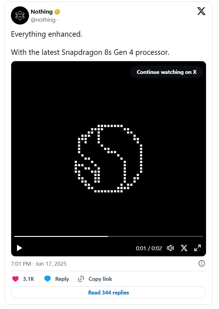 Nothing官方近日确认,其即将发布的Nothing Phone 3将搭载高通骁龙8s Gen 4芯片组,虽然不是旗舰处理器,但这已经是Nothing品牌史上用过的最强芯片了,此前的Nothing Phone 2仍在使用骁龙8+ Gen 1降频版。